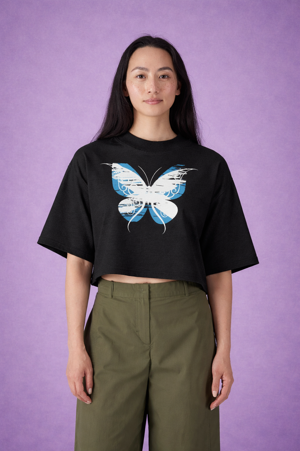 Saltire Sketch Overlay Butterfly | Women’s Cropped Organic T-Shirt